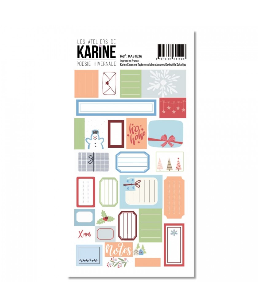 Planche de 30 stickers assortie à la collection POESIE HIVERNALE de la marque Les Ateliers de Karine