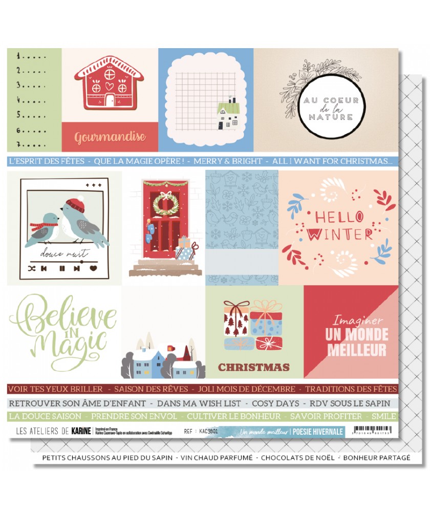 La nouvelle collection "Poésie Hivernale" se veut douce et colorée. Un univers pour mettre en valeur aussi bien des photos des fêtes de fin d'année que des ambiances cocoonings ou sports d'hiver. Des petits motifs à découper, des mignonneries comme nous les aimons pour illustrer de jolis moments de saison.