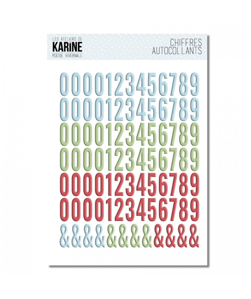 Planche de chiffres autocollants assortie à la collection POESIE HIVERNALE / Les Ateliers de Karine
