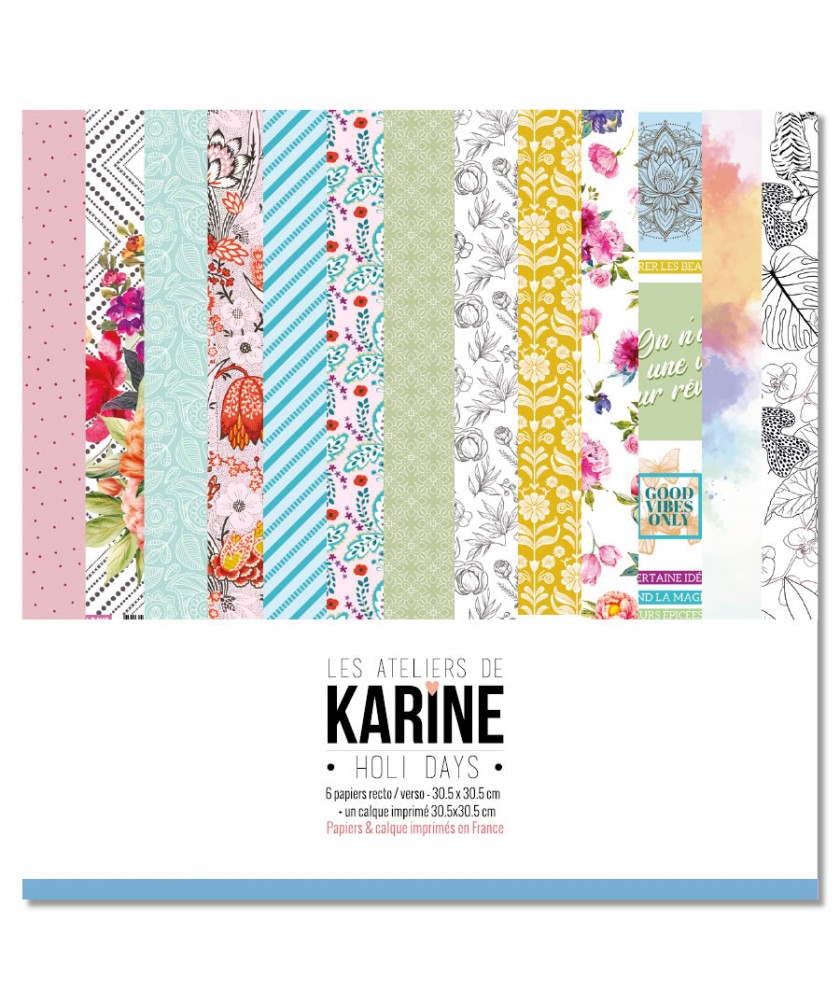 KIT DE 6 PAPIERS IMPRIMÉS RECTO VERSO + 1 PAPIER CALQUE COLLECTION HOI DAYS