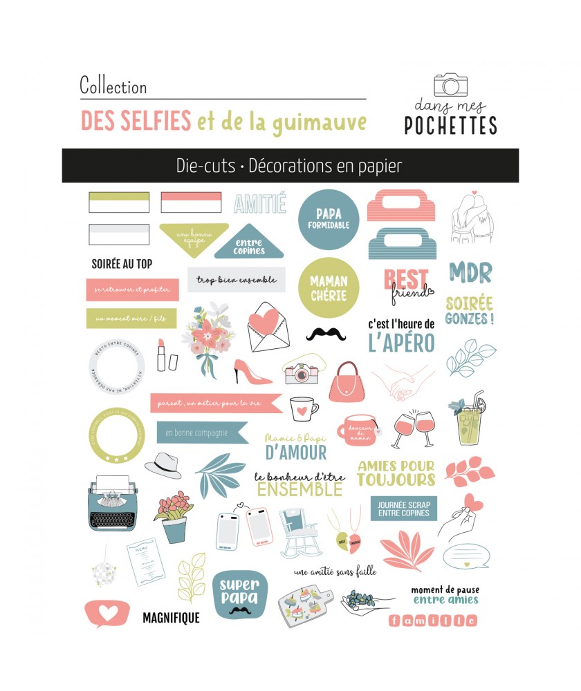 Assortiment de die cuts assortis à la collection DES SELFIES ET DE LA GUIMAUVE