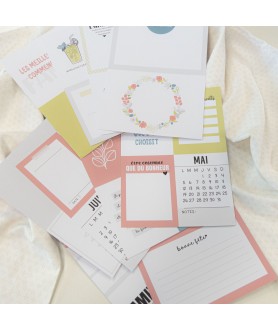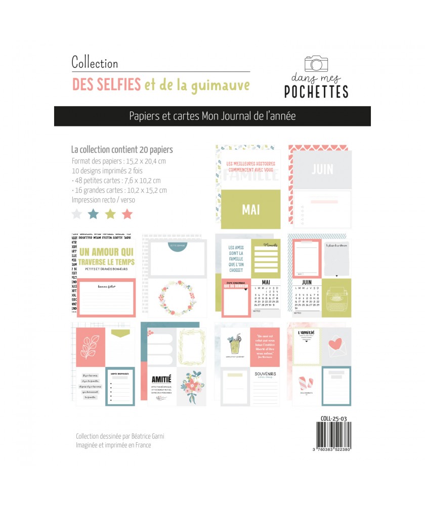 Assortiment de papiers 15 cm x 20 cm à la collection DES SELFIES ET DE LA GUIMAUVE avec cartes pour mon journal de l'année