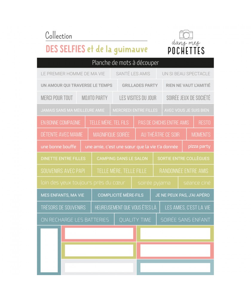 Planche de MOTS A DECOUPER de la collection DES SELFIES ET DE LA GUIMAUVE