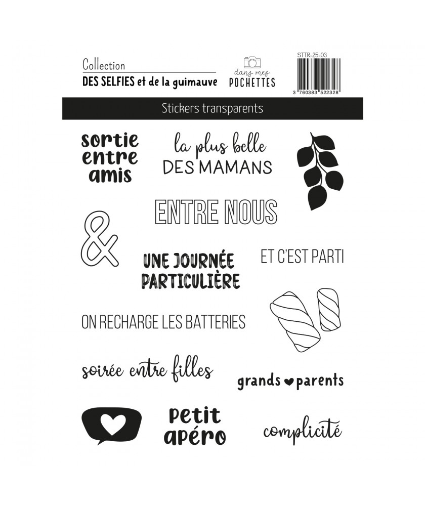 Planche de 14 stickers transparents de la collection DES SELFIES ET DE LA GUIMAUVE