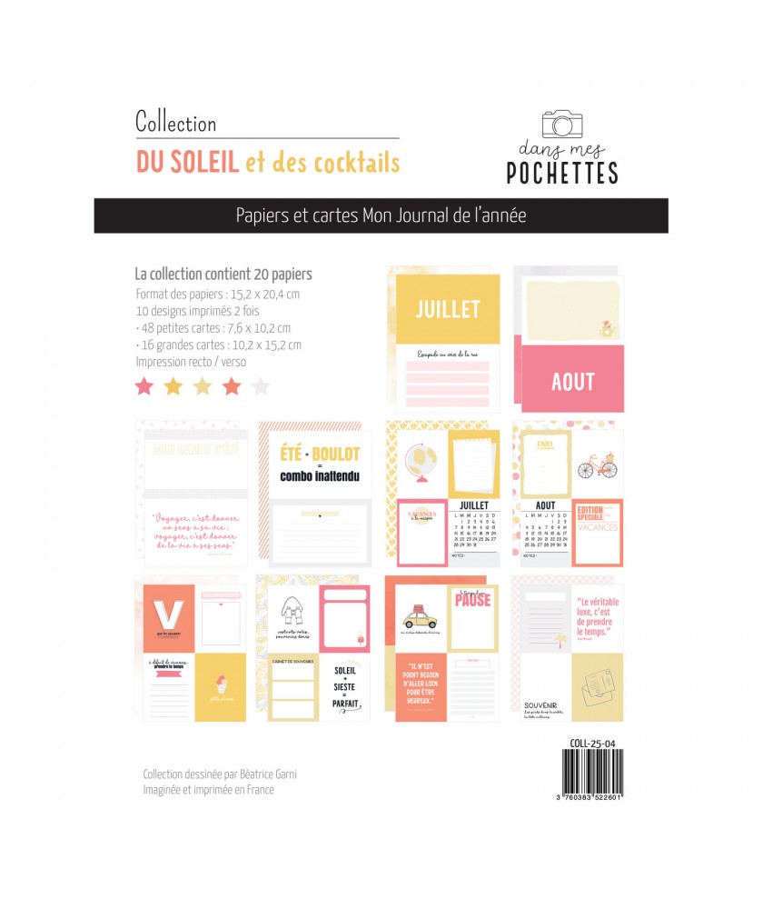Assortiment de papiers 15 cm x 20 cm à la collection DU SOLEIL ET DES COCKTAILS avec cartes pour mon journal de l'année