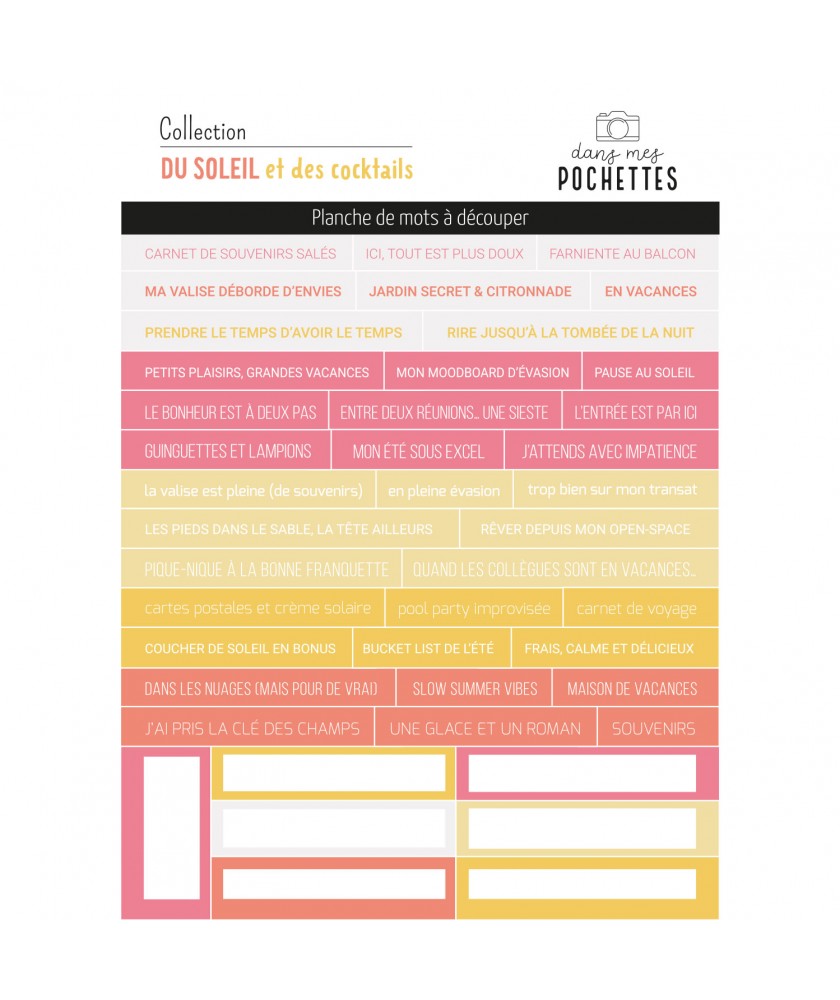 Planche de MOTS A DECOUPER de la collection DU SOLEIL ET DES COCKTAILS