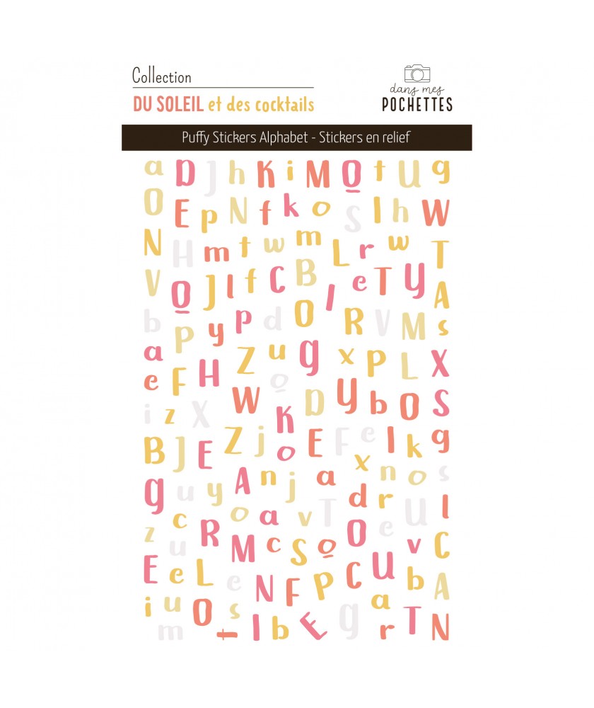 Planche de stickers Puffy alphabet assortie à la collection DU SOLEIL ET DES COCKTAILS