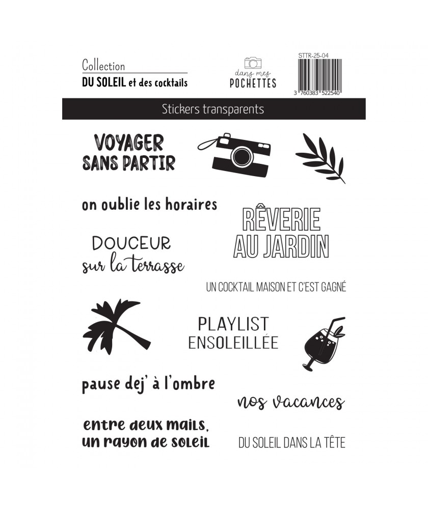 Planche de 14 stickers transparents de la collection DU SOLEIL ET DES COCKTAILS