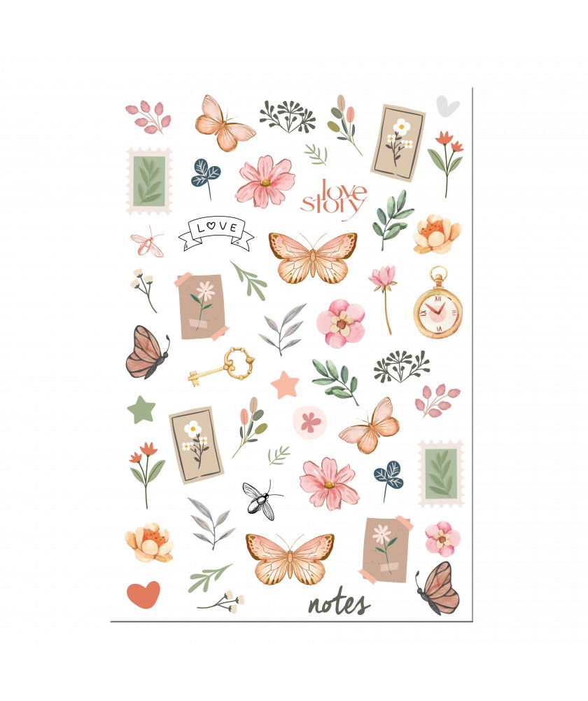 Planche de 51 stickers Puffy en relief collection VINTAGE JOURNAL de la marque Les Ateliers de Karine
