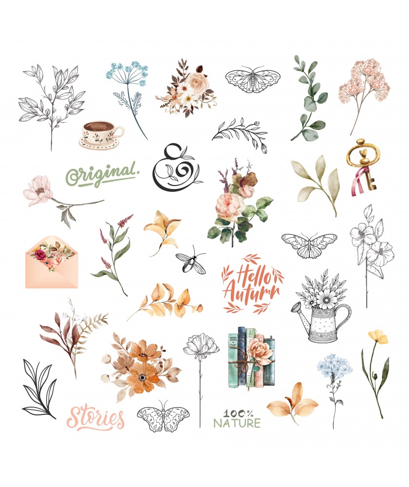Ensemble de 35 die cuts calque assortis à la Collection VINTAGE JOURNAL de la marque Les Ateliers de Karine