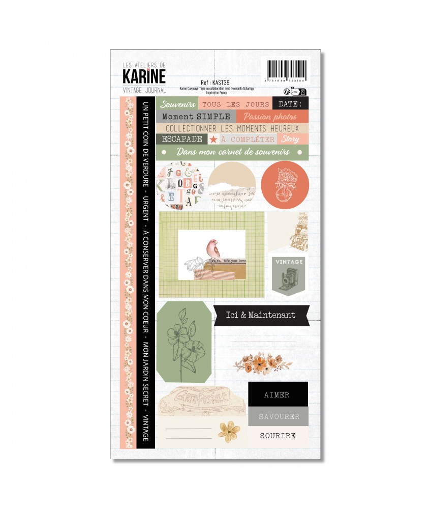 Planche de stickers collection VINTAGE JOURNAL de la marque Les ateliers de Karine