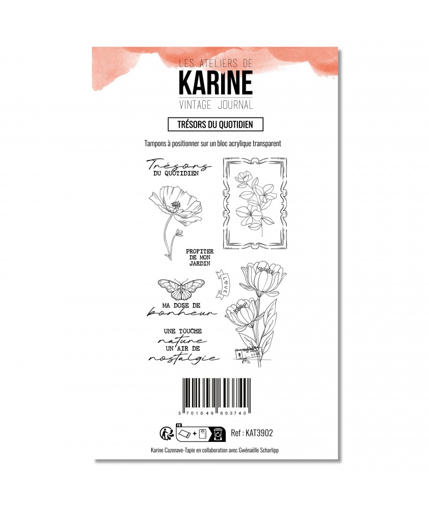 Planche de 8 tampons clear de la collection VINTAGE JOURNAL de la marque Les ateliers de Karine