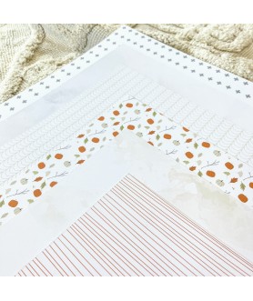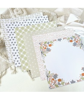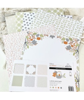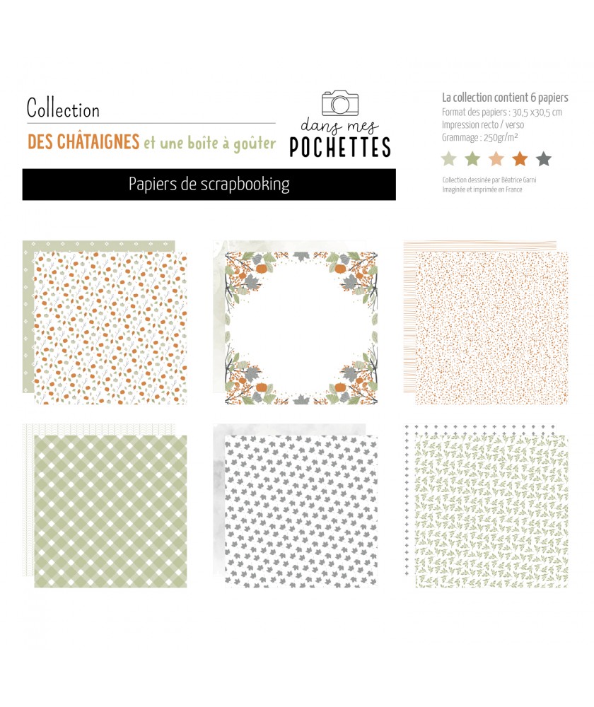 Assortiment de 6 papiers imprimés recto verso de la collection DES CHATÂIGNES ET UNE BOITE À GOÛTER