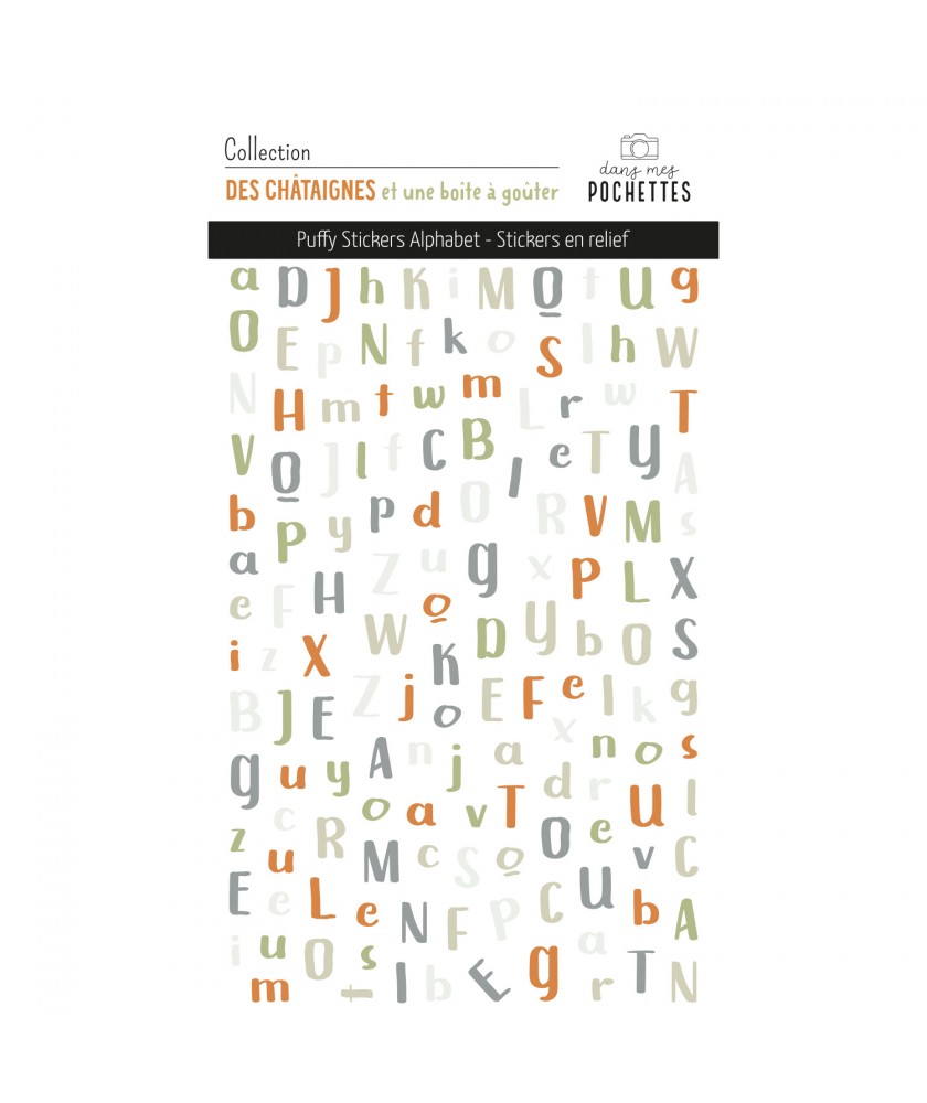 Planche de stickers Puffy alphabet assortie à la collection DES CHATAIGNES ET UNE BOITE A GOUTER