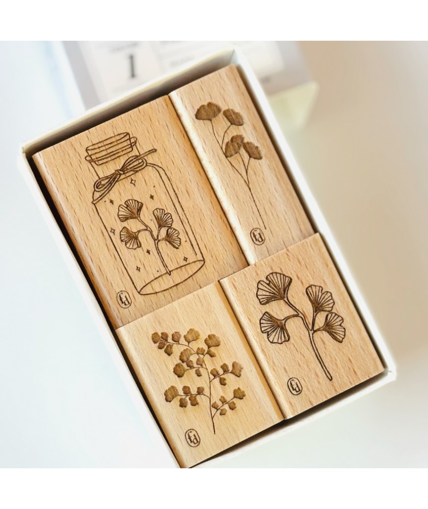 Set de 4 tampons en bois collection GINKGO de la marque Florilèges Design