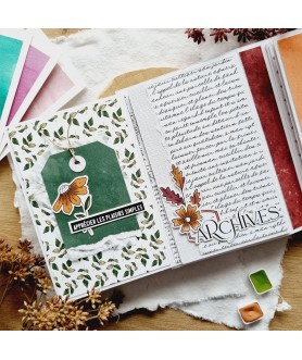 Ensemble de 4 planches de stickers transparents de la collection GINKGO. Motifs automnaux et textes