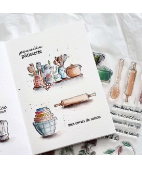 Planche de 7 tampons clear de la collection VINTAGE JOURNAL de la marque Les ateliers de Karine