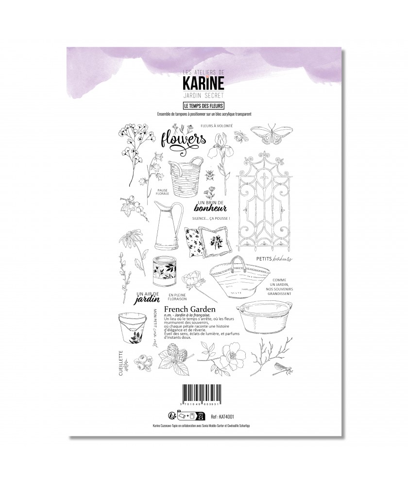 Planche de 35 tampons clears collection JARDIN SECRET de la marque Les Ateliers de Karine