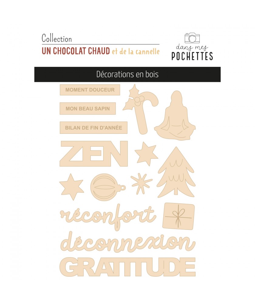 Assortiment de décorations en bois de la collection DU CHOCOLAT CHAUD ET DE LA CANNELLE