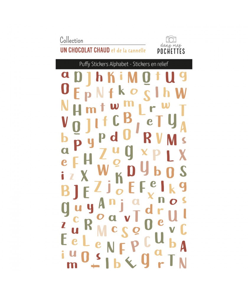 Planche de stickers Puffy alphabet assortie à la collection DU CHOCOLAT CHAUD ET DE LA CANNELLE