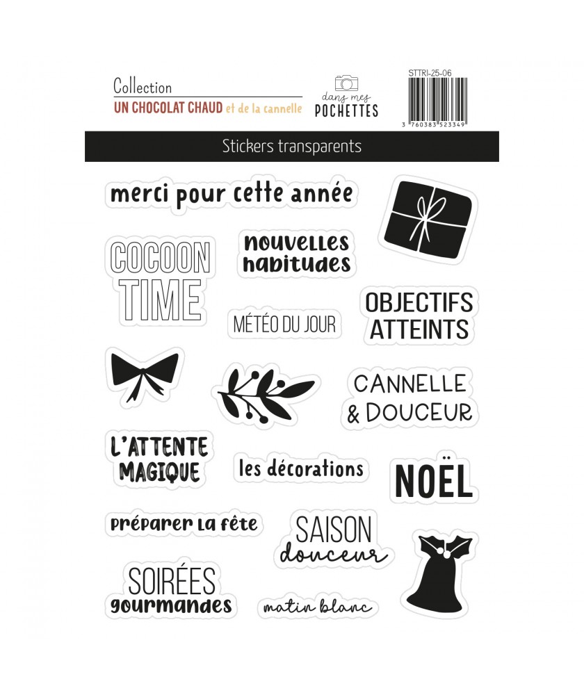 Planche de 14 stickers transparents de la collection UN CHOCOLAT CHAUD ET DE LA CANNELLE