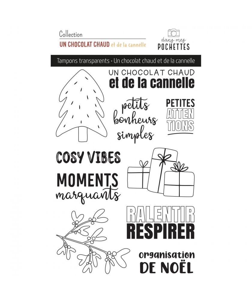 PLANCHE DE 10 TAMPONS CLEAR COLLECTION UN CHOCOLAT CHAUD ET DE LA CANNELLE
