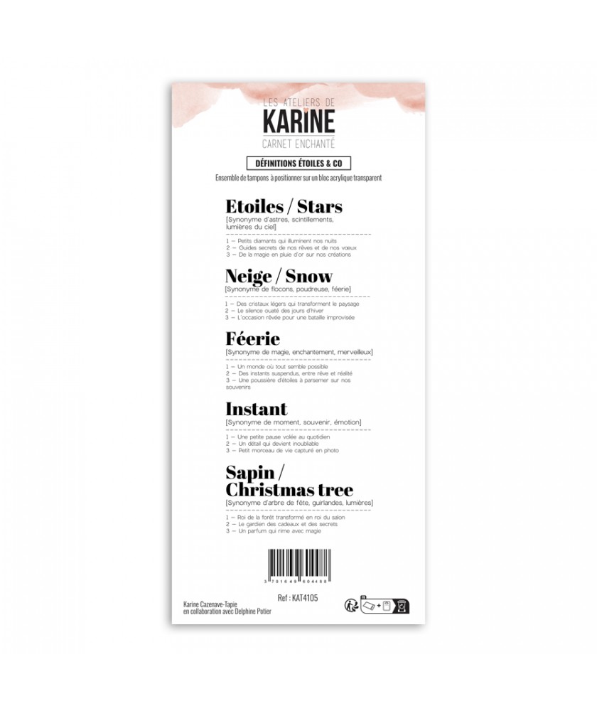 Planche de 5 tampons clears collection CARNET ENCHANTÉ de la marque Les Ateliers de Karine