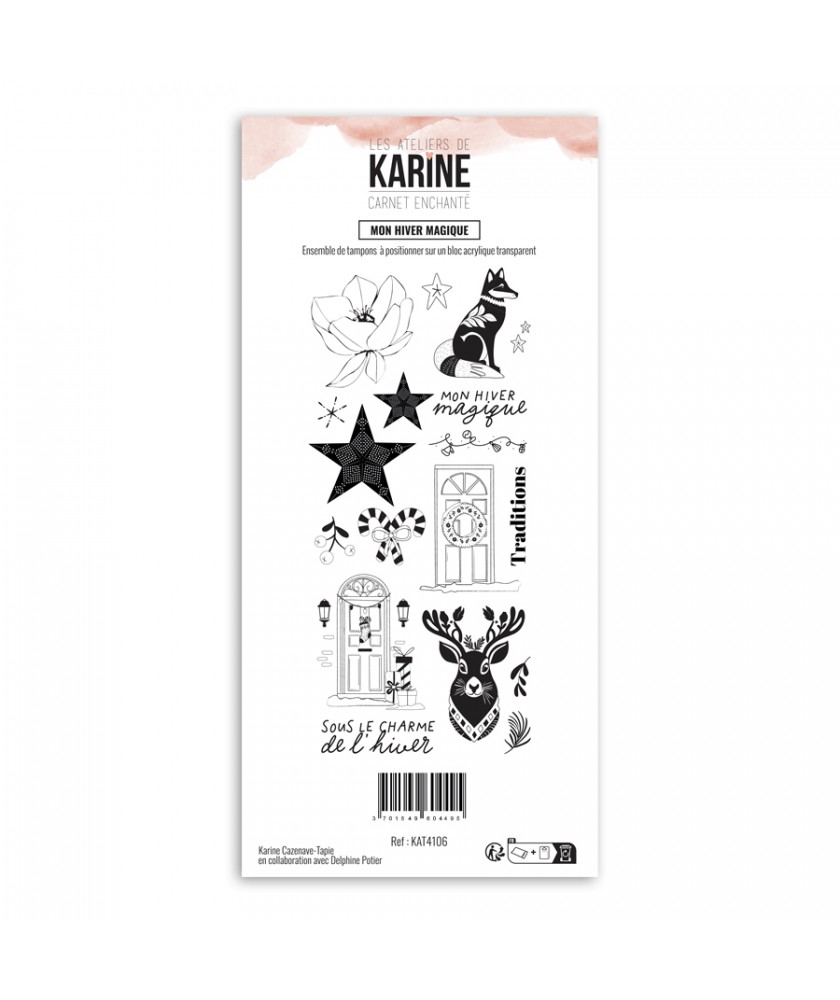 Planche de 17 tampons clears collection CARNET ENCHANTÉ de la marque Les Ateliers de Karine