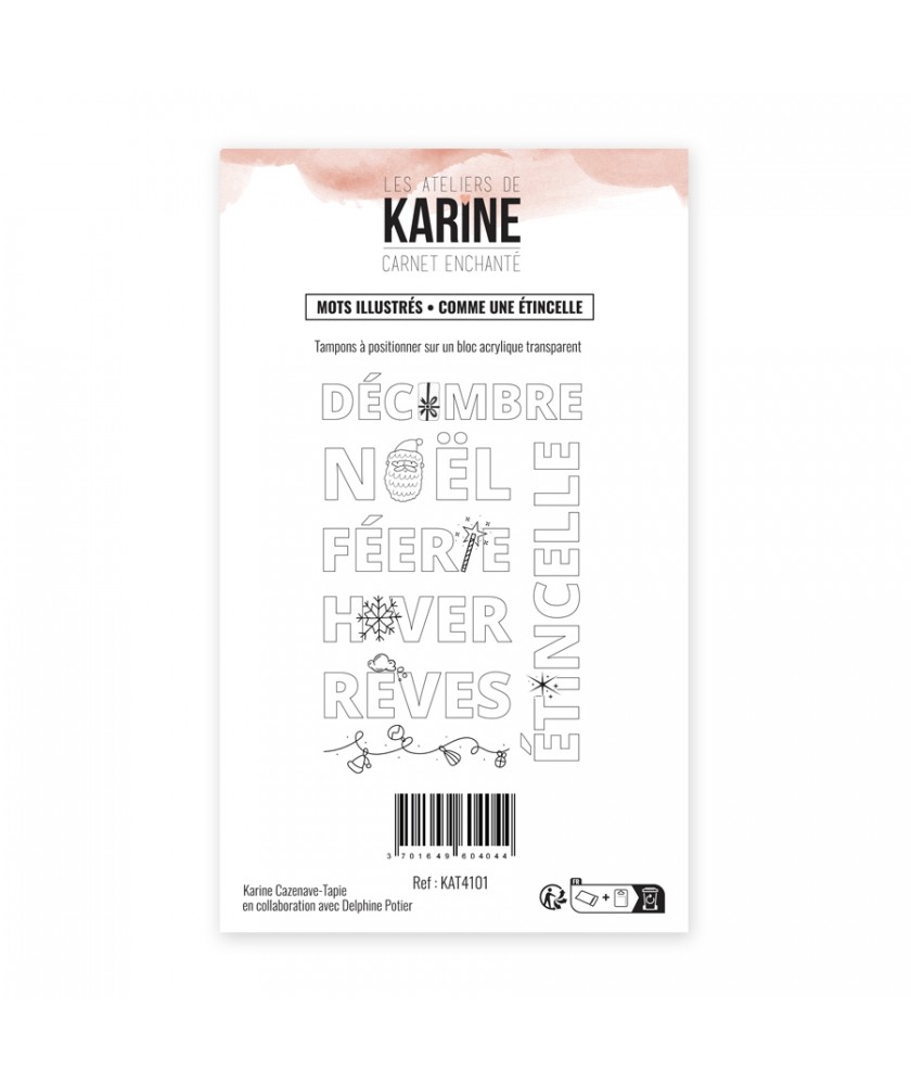 Planche de 7 tampons clears collection CARNET ENCHANTÉ de la marque Les Ateliers de Karine