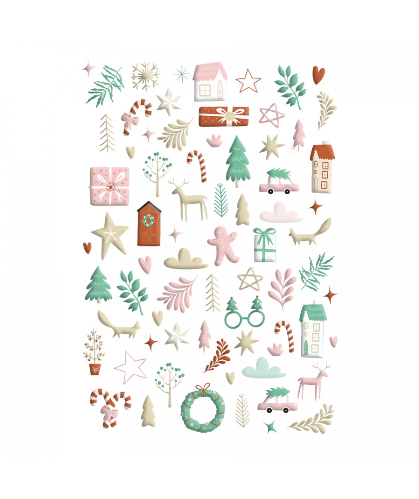 Planche de 87 stickers PUFFY assortie à la collection POESIE HIVERNALE / Les Ateliers de Karine