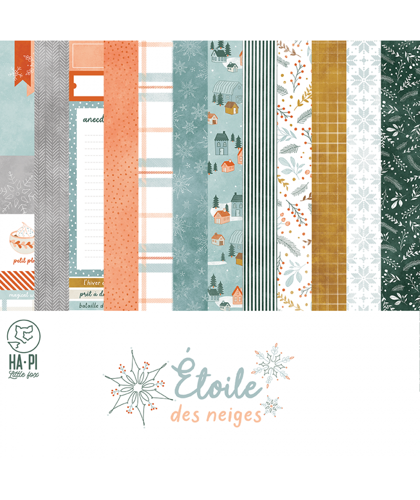 Ensemble de 6 papiers imprimés et 3 papiers unis assortis collection Etoile des neiges