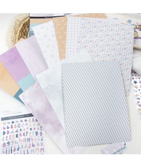 Assortiment de papiers 15 cm x 20 cm à la collection Des crêpes et des paillettes avec cartes pour mon journal de l'année