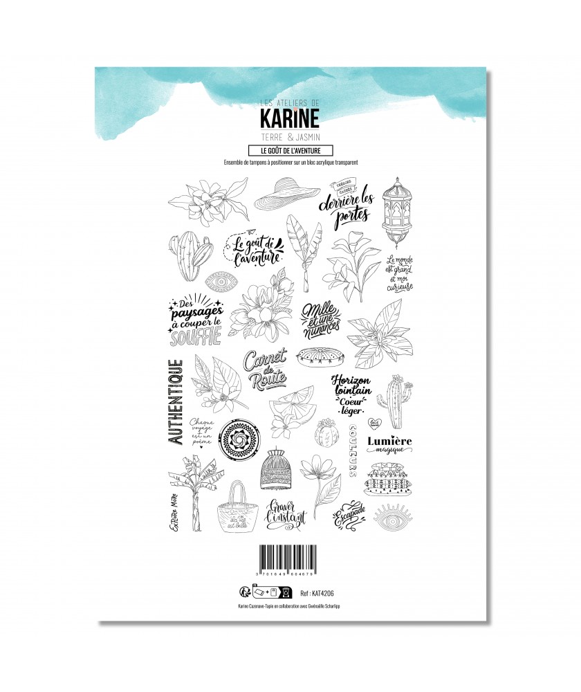 Planche de 35 tampons clear collection Terre & Jasmin de la marque Les Ateliers de Karine