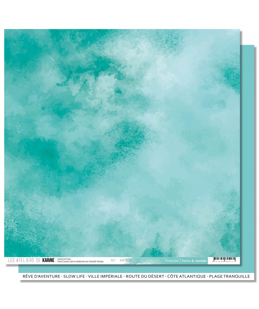 Papier uni duo turquoise collection Terre & Jasmin de la marque Les Ateliers de Karine