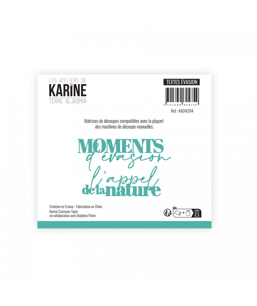 Dimension Texte Moments d'évasion 12.2 cm x 4.2 cm / l'appel de la nature 10 cm x 4 cm