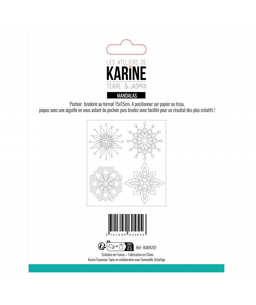 Ensemble de 4 motifs pochoir broderie collection Terre & Jasmin de la marque Les ateliers de Karine