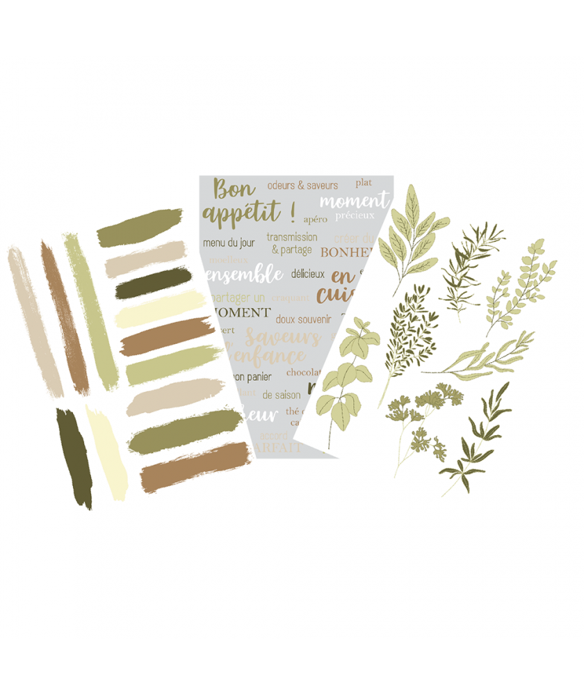 Kit de 6 papiers imprimés recto verso + 1 papier calque . Collection Terre & Jasmin de la marque Les Ateliers de Karine