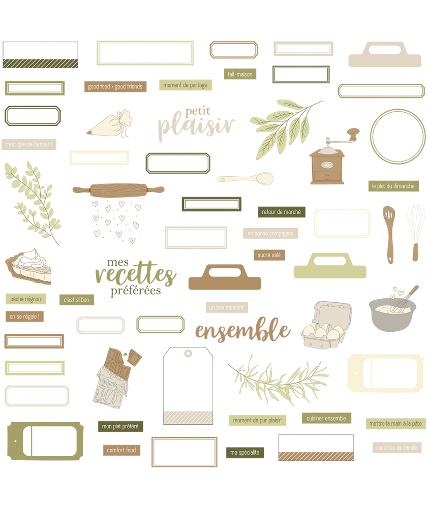 Ensemble de 62 die cuts en papier épais assortis à la collection Recette de famille de la marque HA.PI little fox