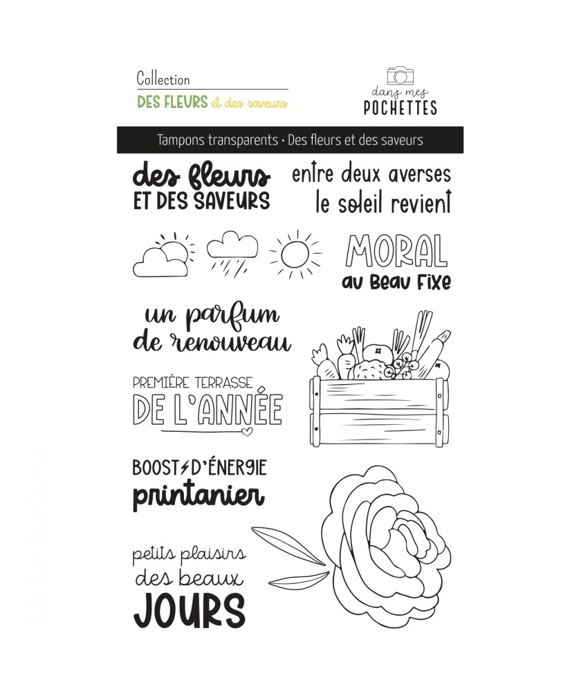 Planche de tampons clear assortis à la collection Des fleurs et des saveurs de la marque Dans mes pochettes