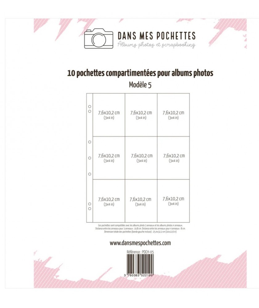 CES POCHETTES DISPOSENT DE 9 EMPLACEMENTS AU FORMAT 7.6 CM X 10.2 CM