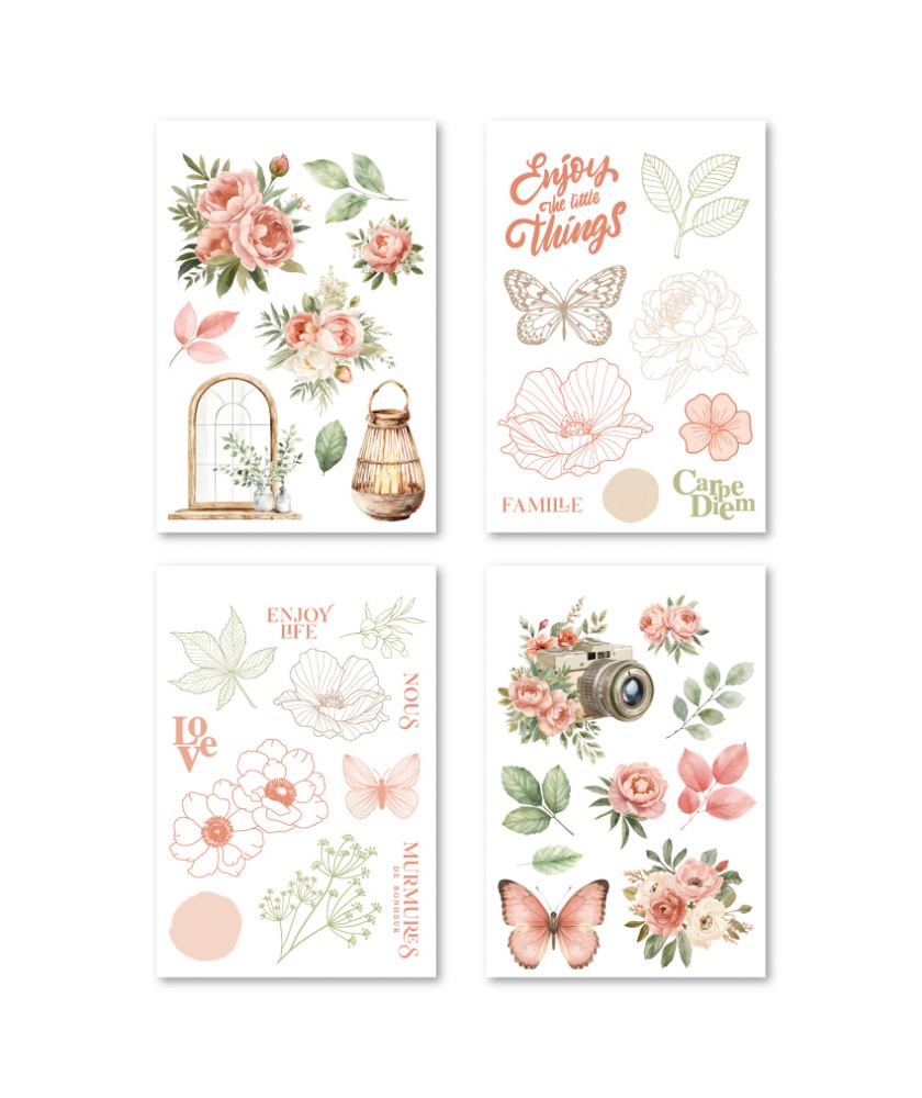 Ensemble de planches de stickers transparents avec motifs collection MURMURES de Florilèges design