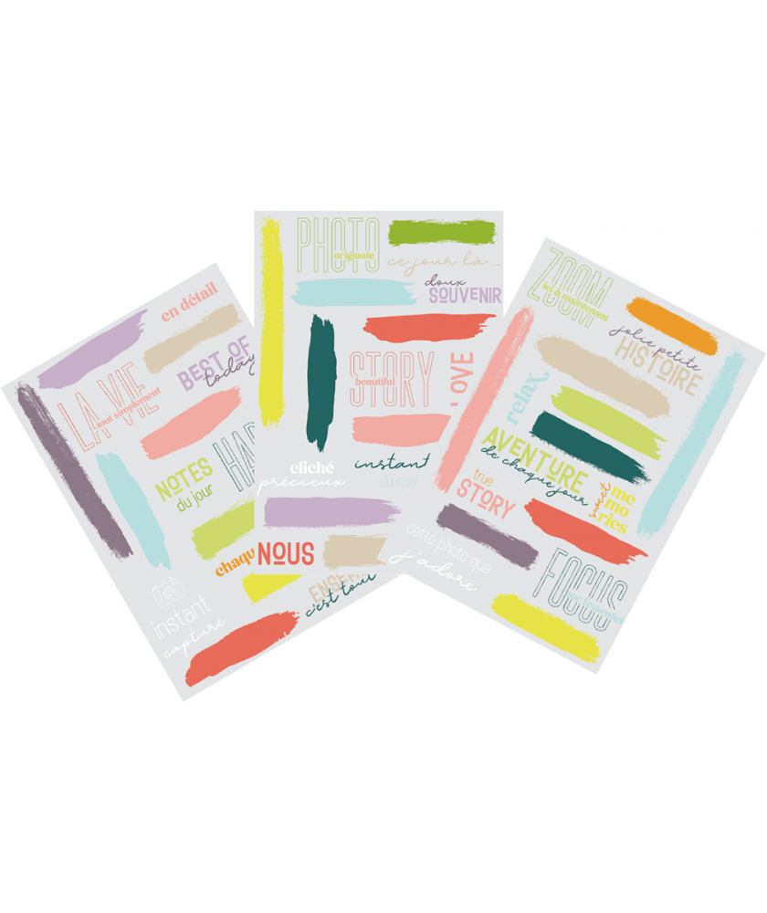 Ensemble de planches de stickers transparents avec motifs collection MURMURES de Florilèges design