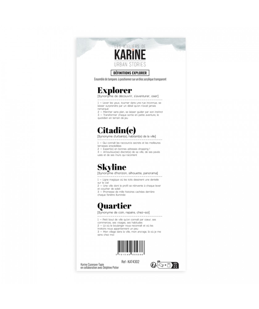 Planche de 4 tampons clear définitions collections URBAN STORIES de la marque Les Ateliers de Karine