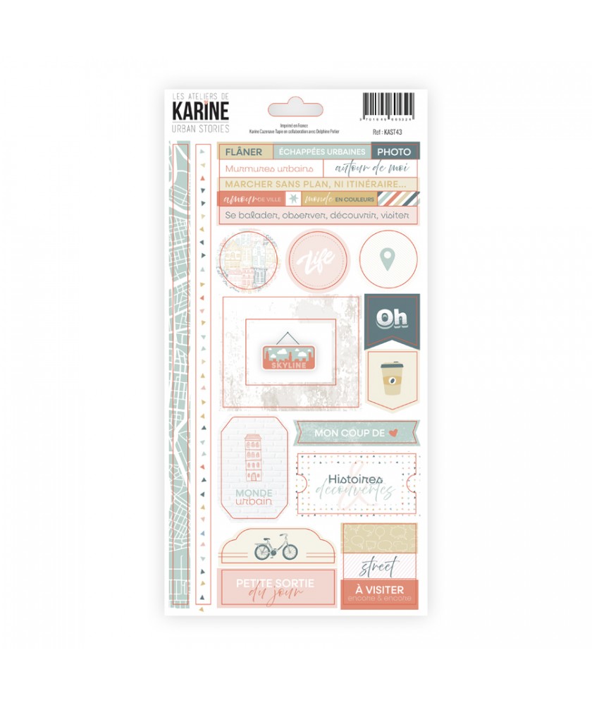 Planche de stickers étiquettes collection URBAN STORIES de la marque Les Ateliers de Karine