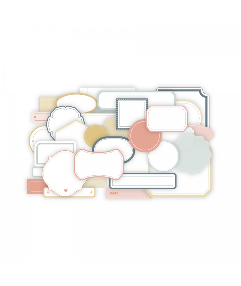 Ensemble de 35 die cuts étiquettes en papier collection URBAN STORIES de la marque Les Ateliers de Karine