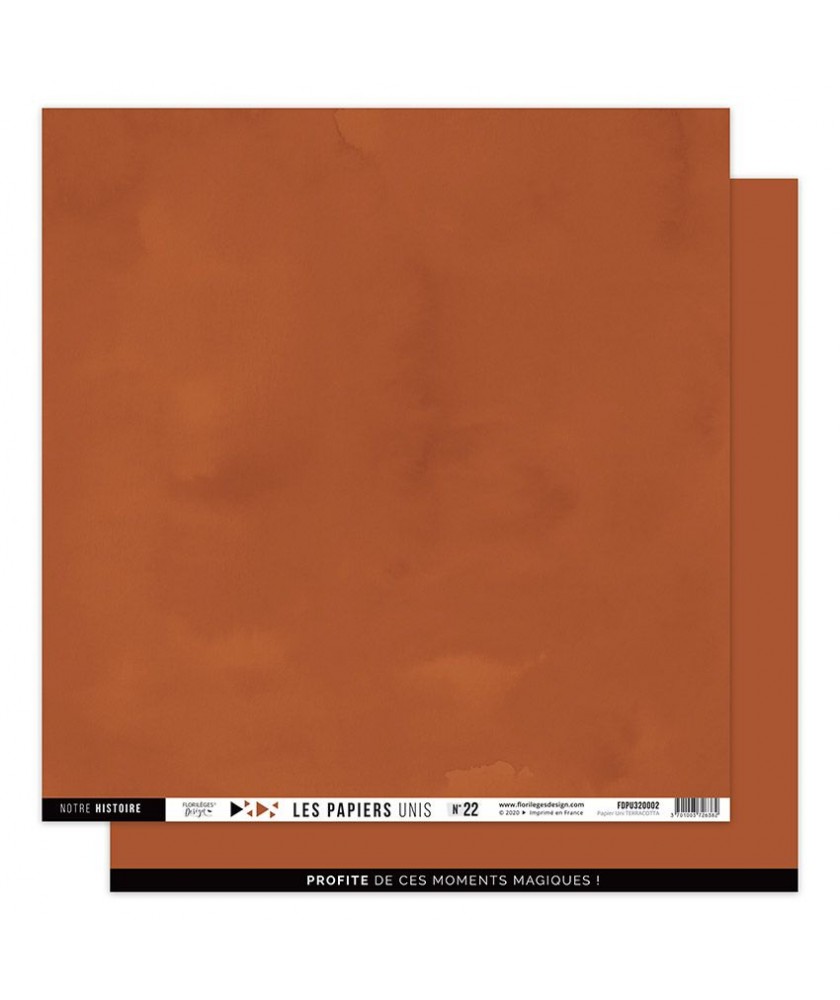 Papier uni Terracotta, 1 côté uni et 1 côté style aquarelle. Grammage 250 g