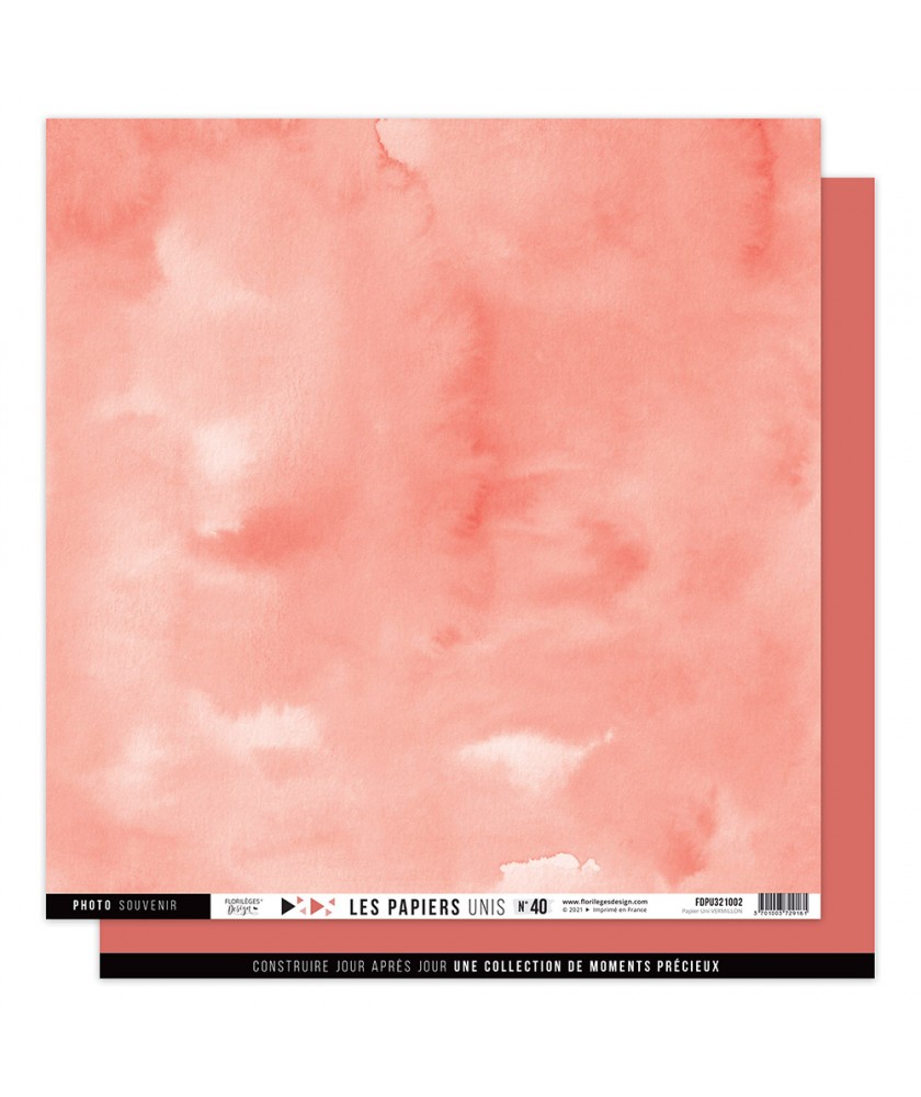 Papier uni Vermillon, 1 côté uni et 1 côté style aquarelle. Grammage 250g