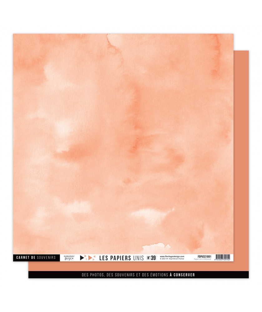 Papier uni Citrouille, 1 côté uni et 1 côté style aquarelle. Grammage 250g